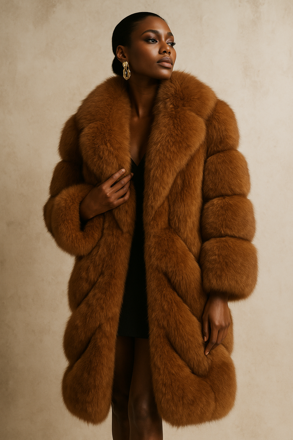 Part of The Arrival Capsule within The Winter Reverie Collection, the Aurelia Coat in Truffle Ember radiates understated opulence. Sculpted from genuine fox fur in deep truffle tones with warm undertones of ember, it embodies heritage refinement and cinematic luxury. Designed for the woman whose presence carries both strength and silence.